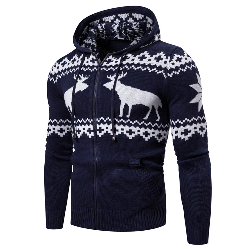 Men's Christmas Reindeer Knit Zipper Hoodie Sweater